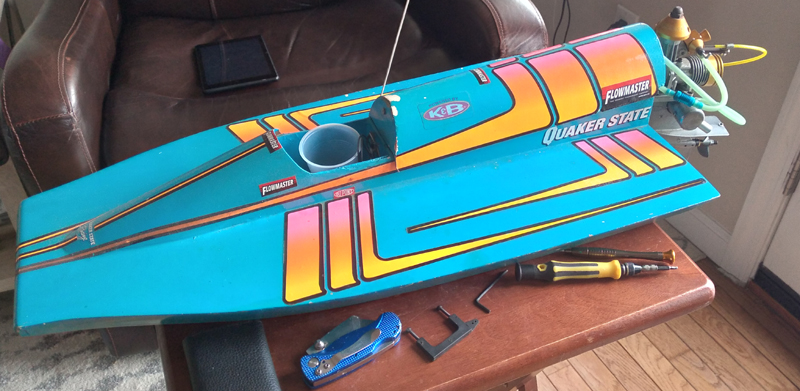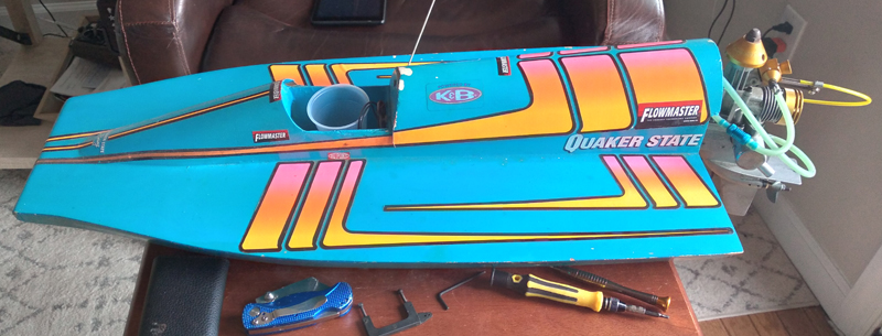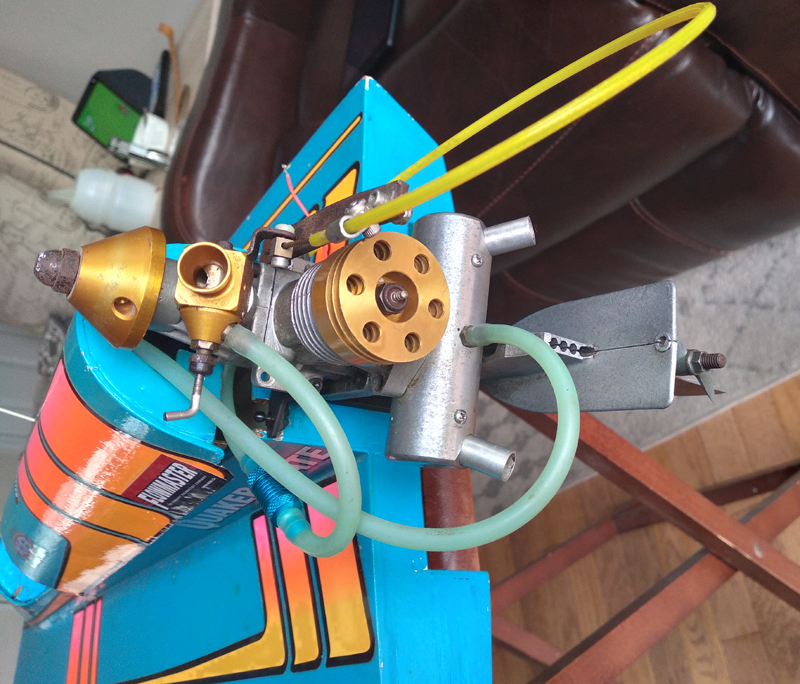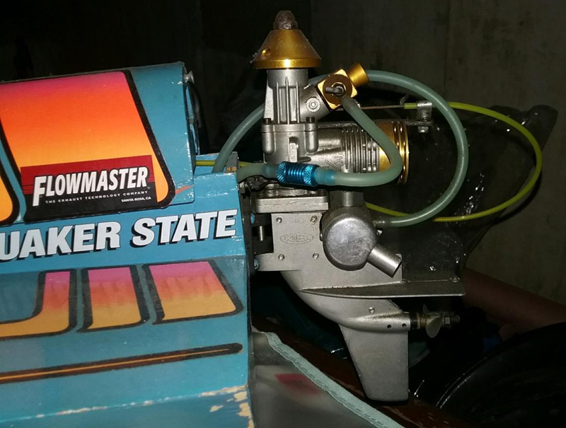 3.5 cc outboard. My father bought this kit for me from Americas Hobby