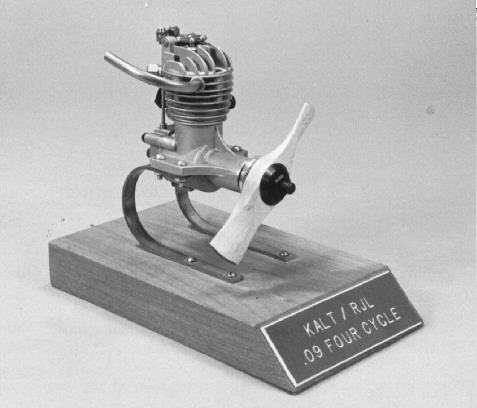 1992 - .09 four stroke engine made by RJL about 1990 as a joint project with Mr. Oki of Tokyo, Japan (Founder and former president of Kalt Helicopters). This design was dropped in favor of a 2 stroke design fashioned after the Elf engine produced in the 1930's. If you find this engine, please notify us.